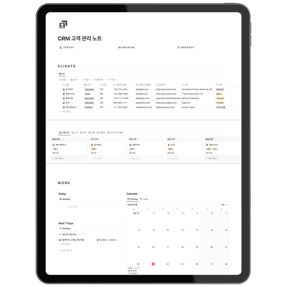 노션 CRM 템플릿, 고객 관리 노트